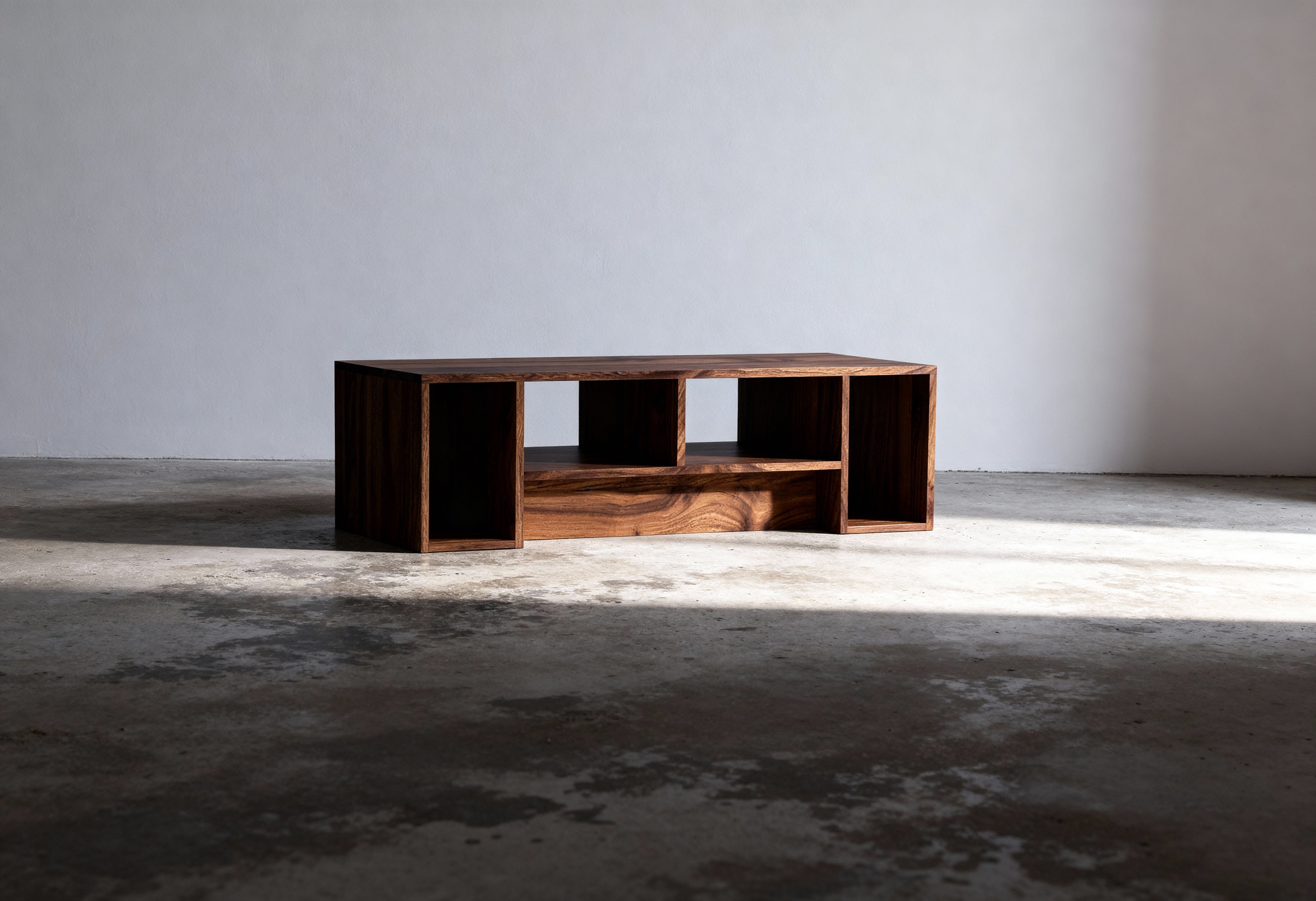 The Bodhi Side Table epitomises refined craftsmanship. Constructed from premium black walnut, each piece reveals distinctive grain characteristics and a sophisticated depth of colour.