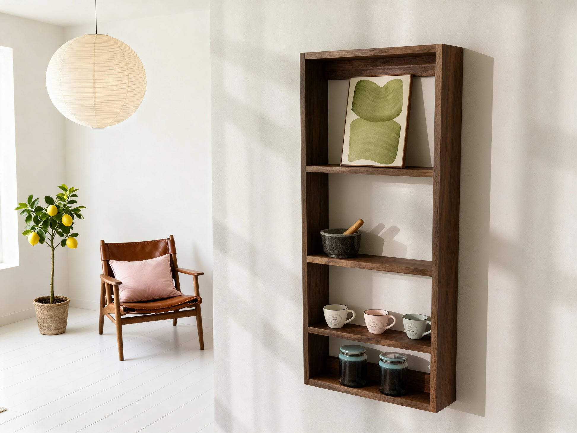 The 'Bohdi' Vertical Shelf is a timeless and space-smart solid walnut shelf, designed to bring warmth, function, and simplicity to your home. Featuring a tall, narrow profile, it’s the perfect vertical wall shelving unit for compact areas like walkways, kitchen walls, or entranceways. Each shelf is precision-crafted from premium black walnut, offering rich grain character and a modern yet organic aesthetic.