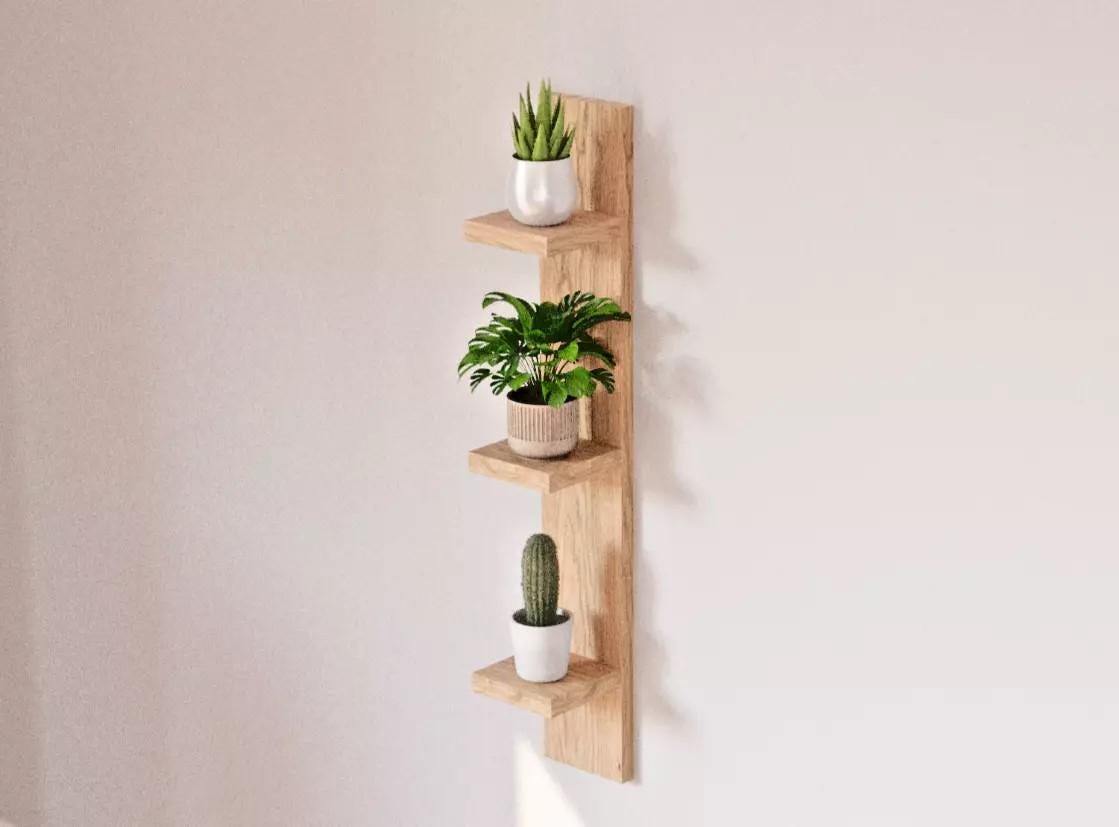 Solid oak vertical wall shelf perfect for plants, books, or ornaments, a stylish storage solution for your living room, bathroom, or kitchen.”