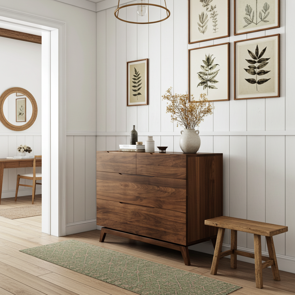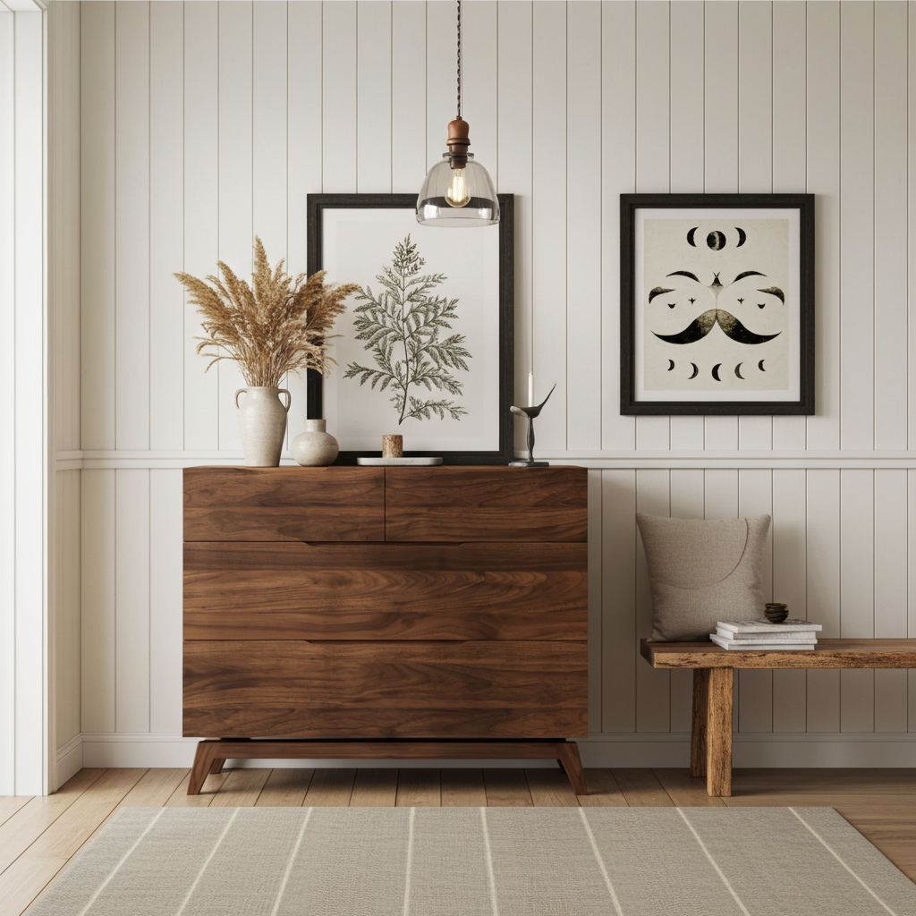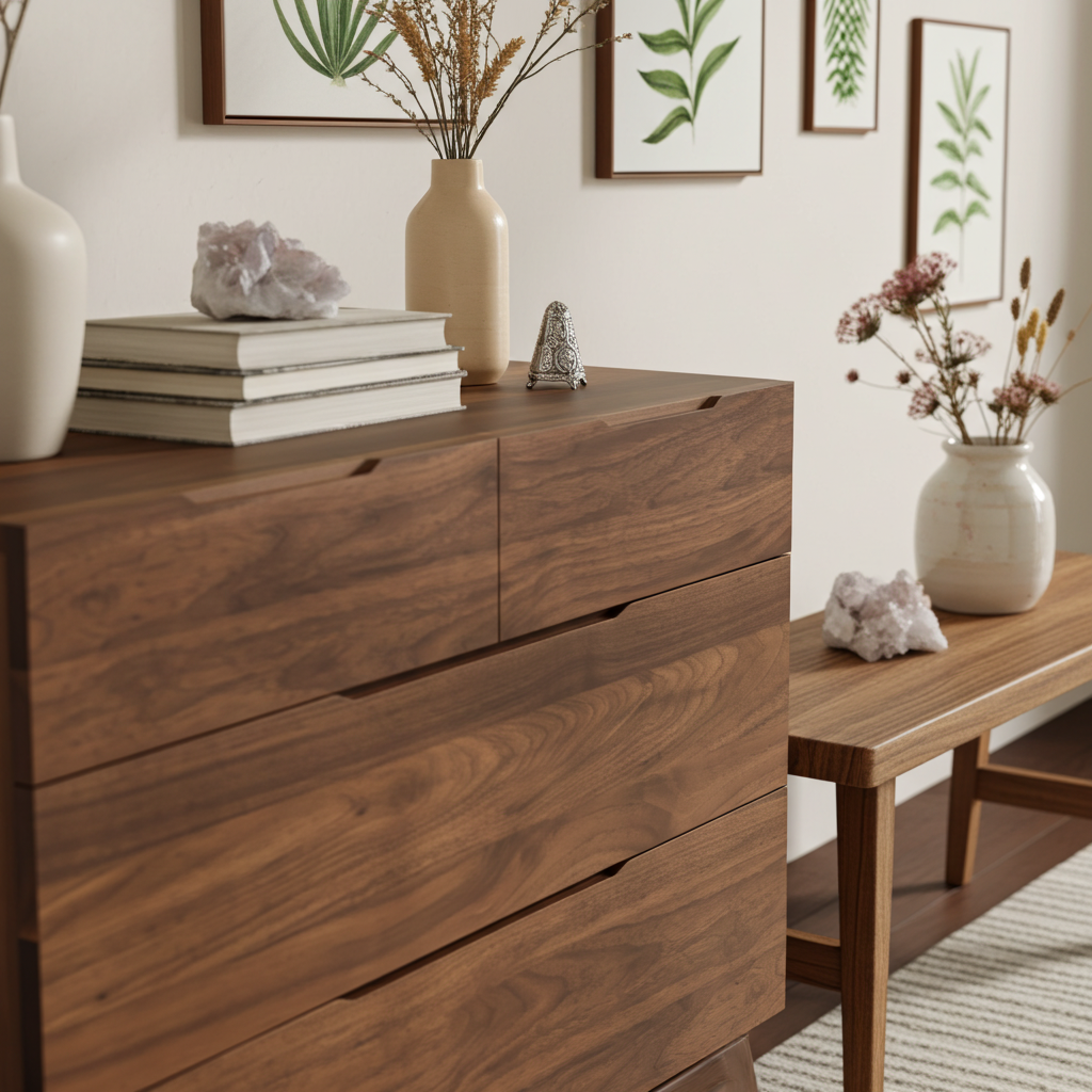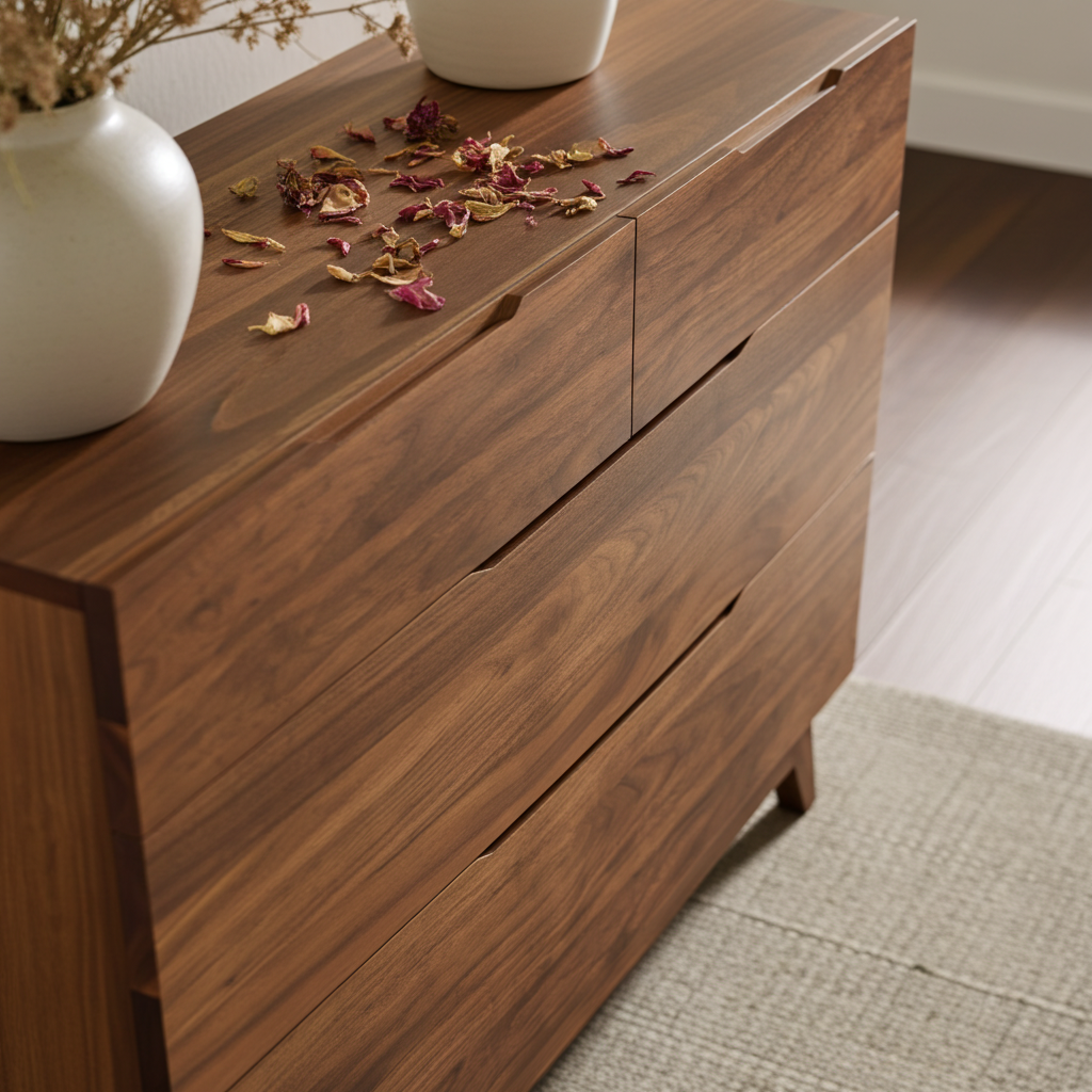 Handcrafted from premium solid walnut, this Kohba sideboard combines sleek design with practical storage. A timeless piece that adds warmth and elegance to any modern home.